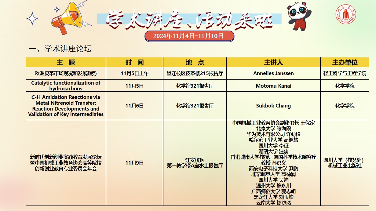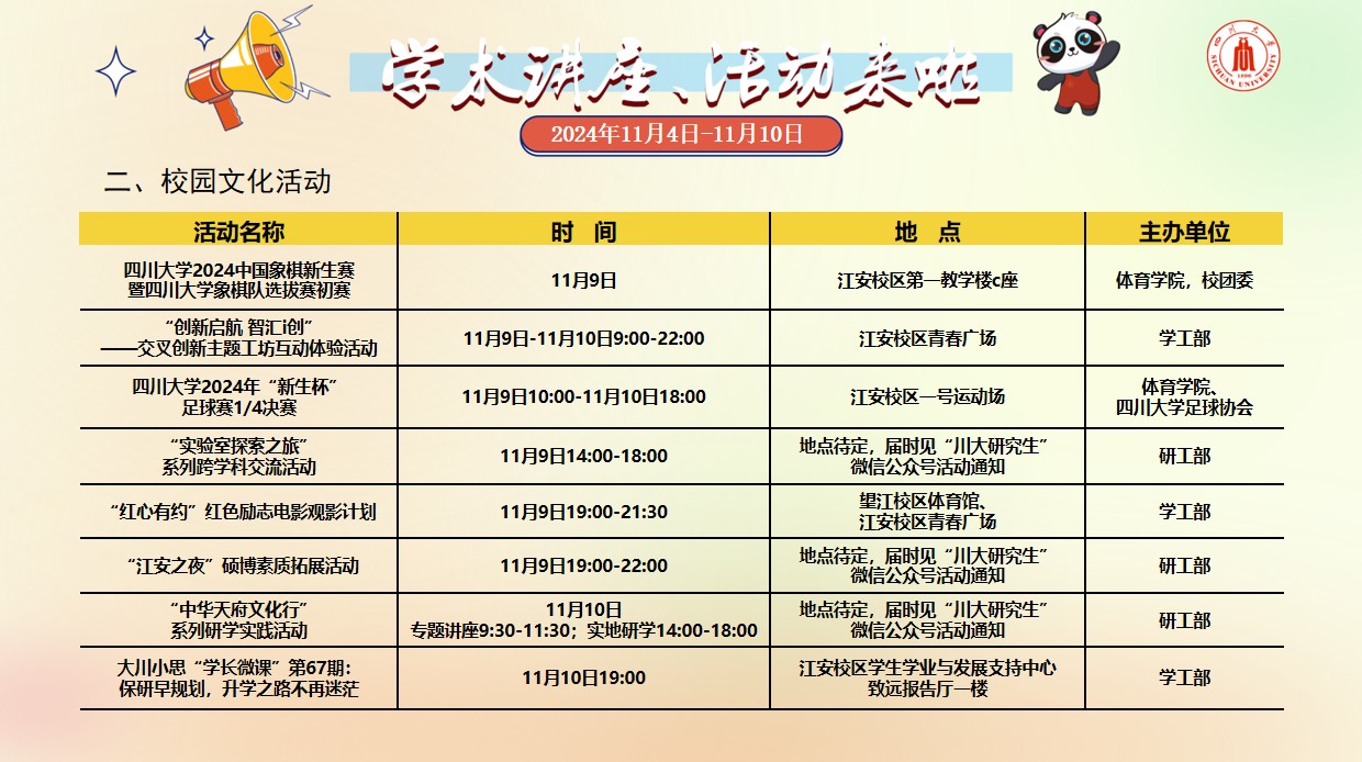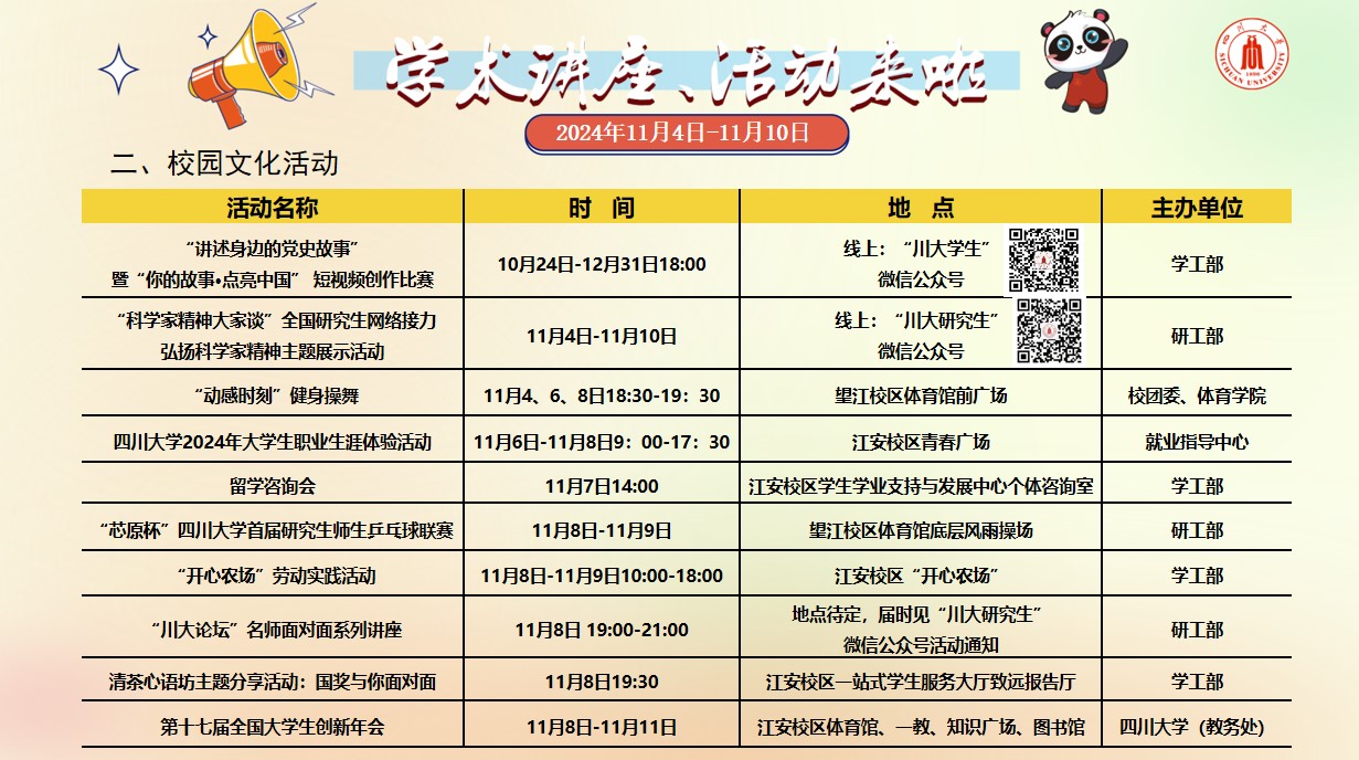 四川大学2024年11月4日-10日学术讲座及校园文化预告