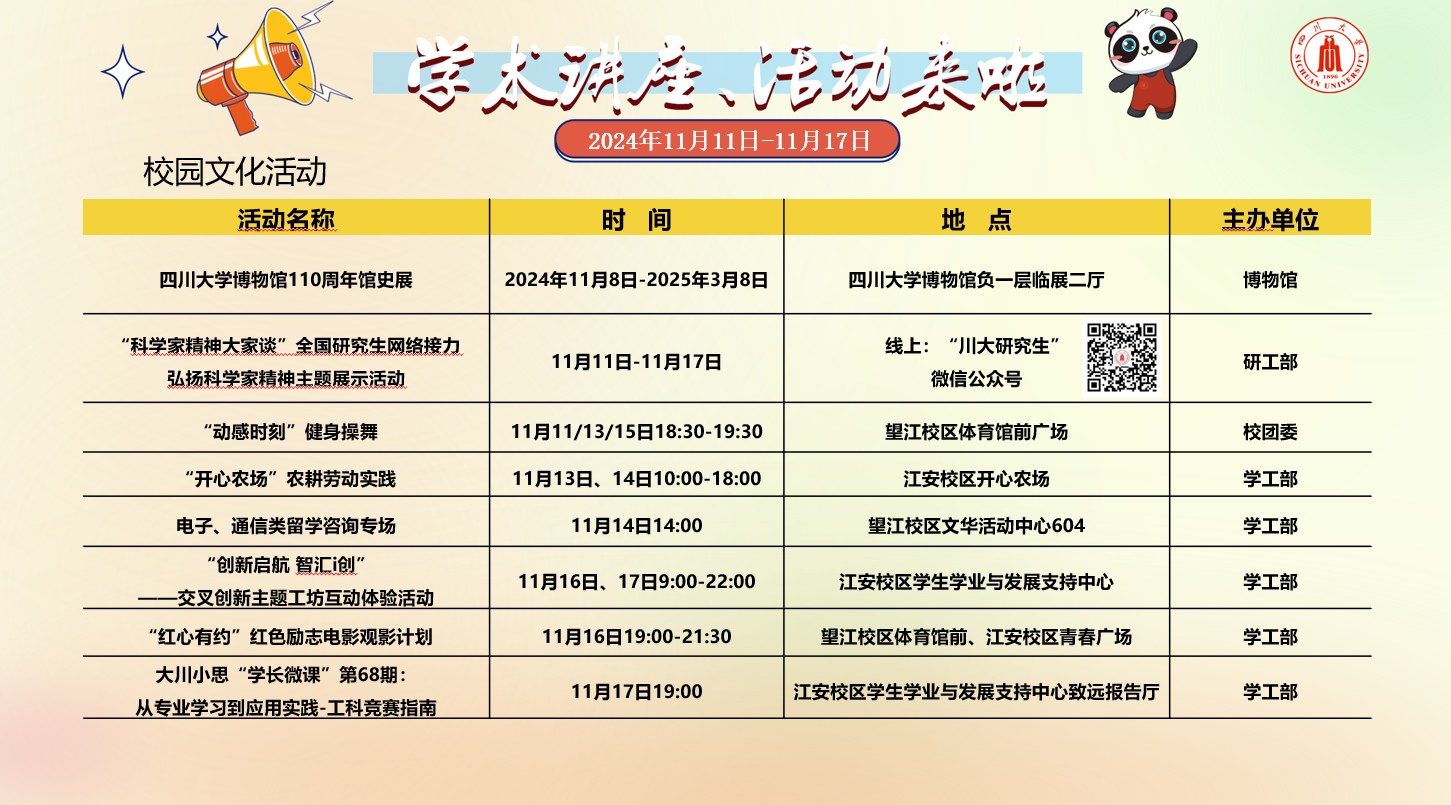 四川大学2024年11月11日-17日学术讲座及校园文化预告