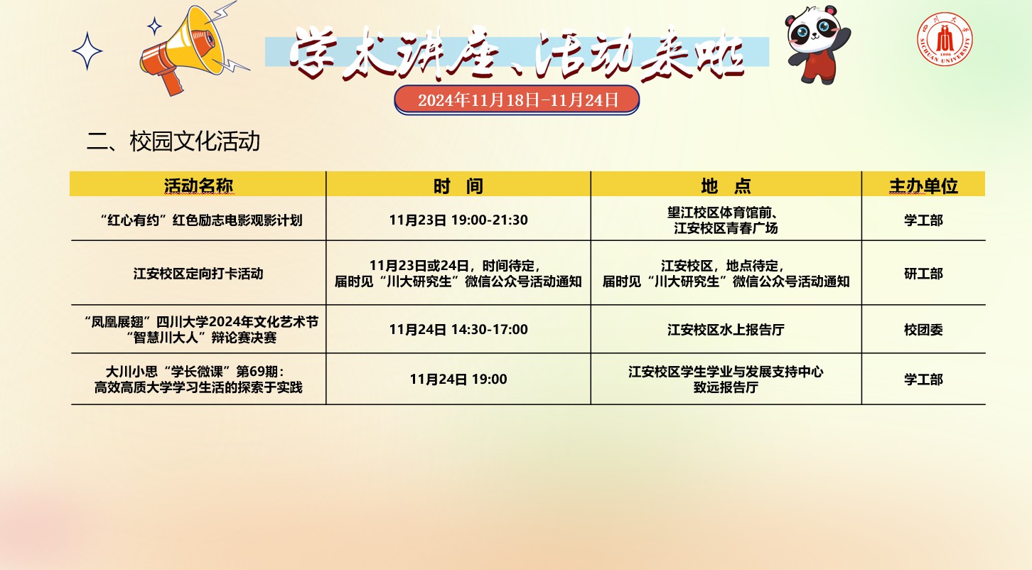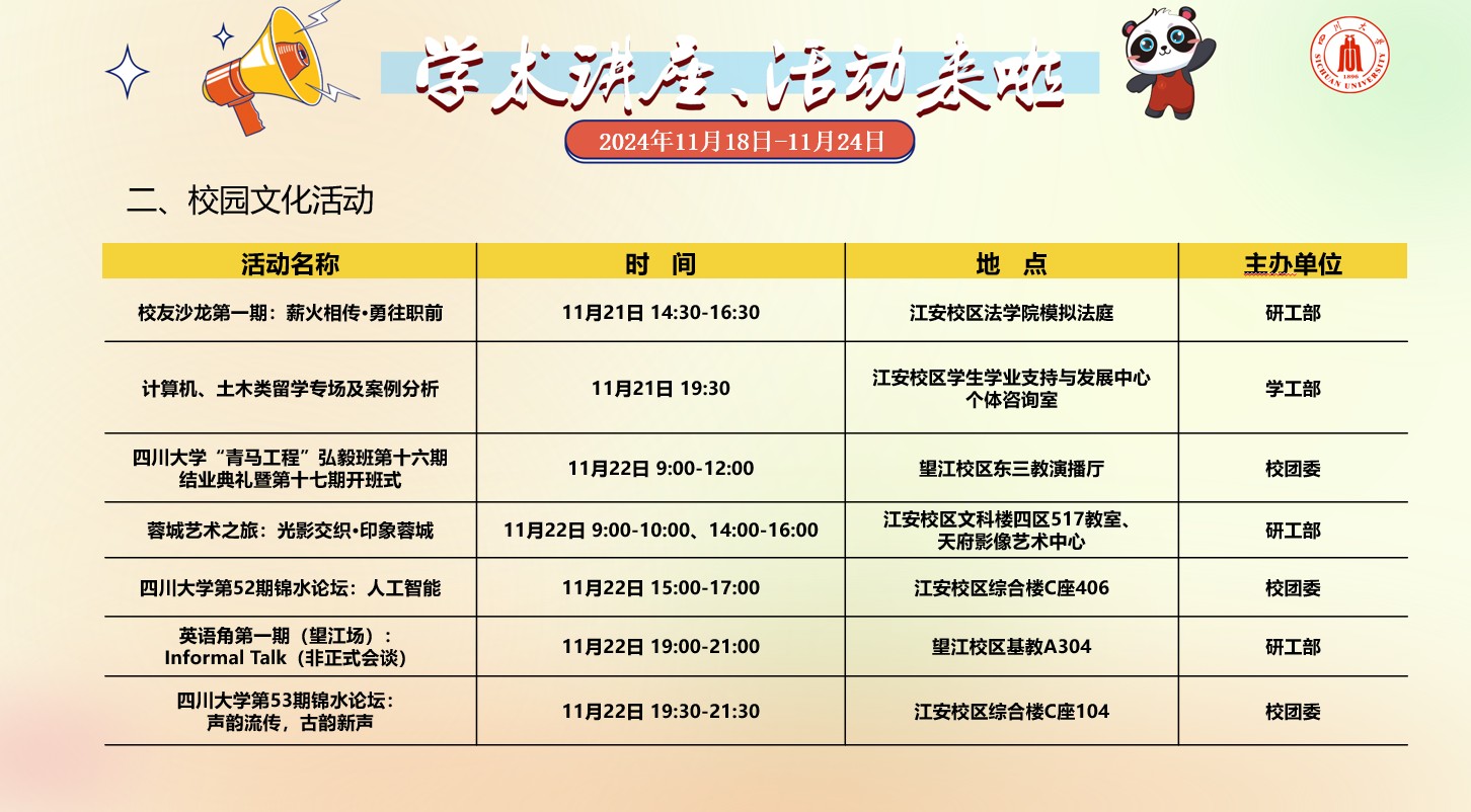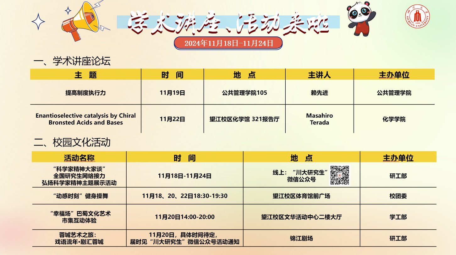四川大学2024年11月18日-24日学术讲座及校园文化预告