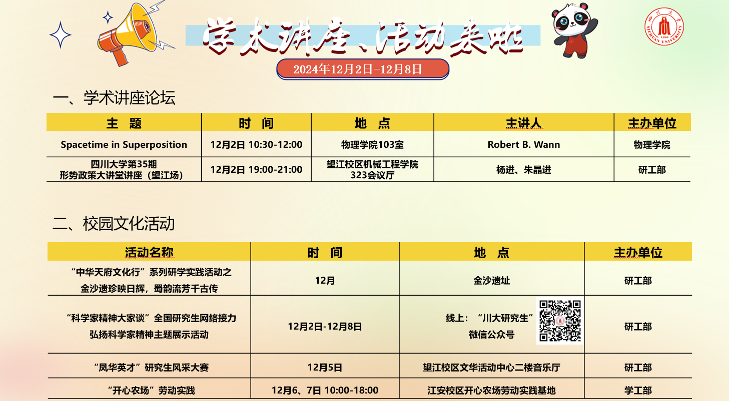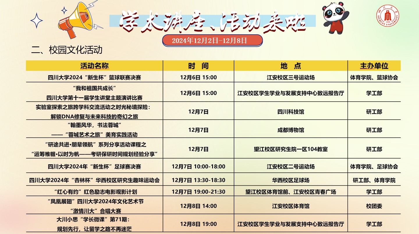 四川大学2024年12月2日-12月8日讲座及校园文化预告