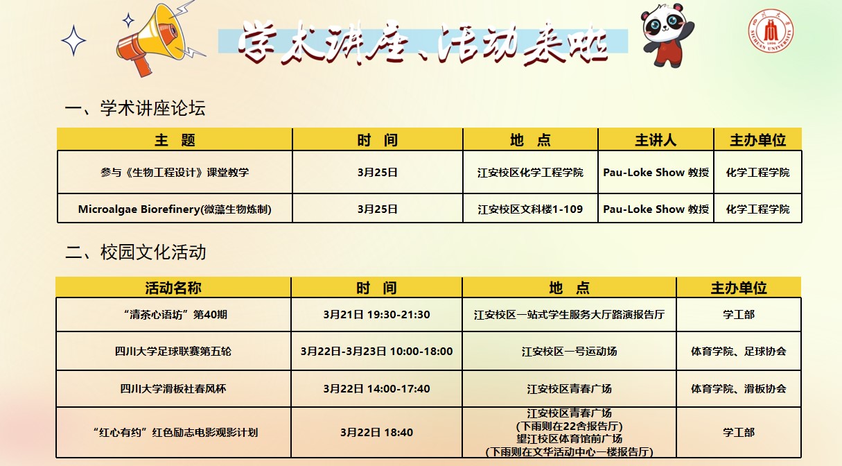 四川大学2025年3月21日-2025年3月25日讲座和活动预告