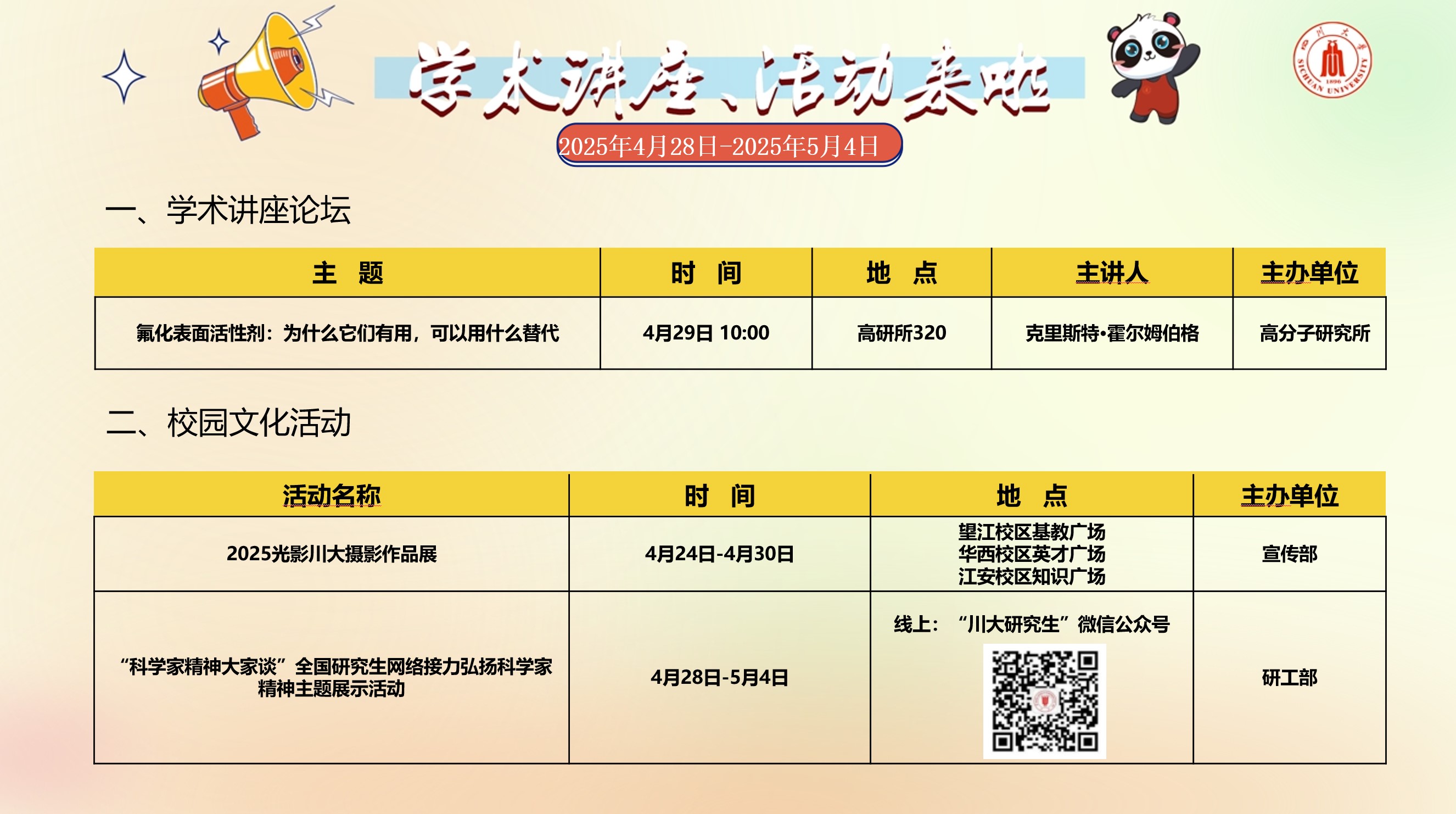 四川大学2025年4月28日-5月4日学术讲座论坛及校园文化活动预告