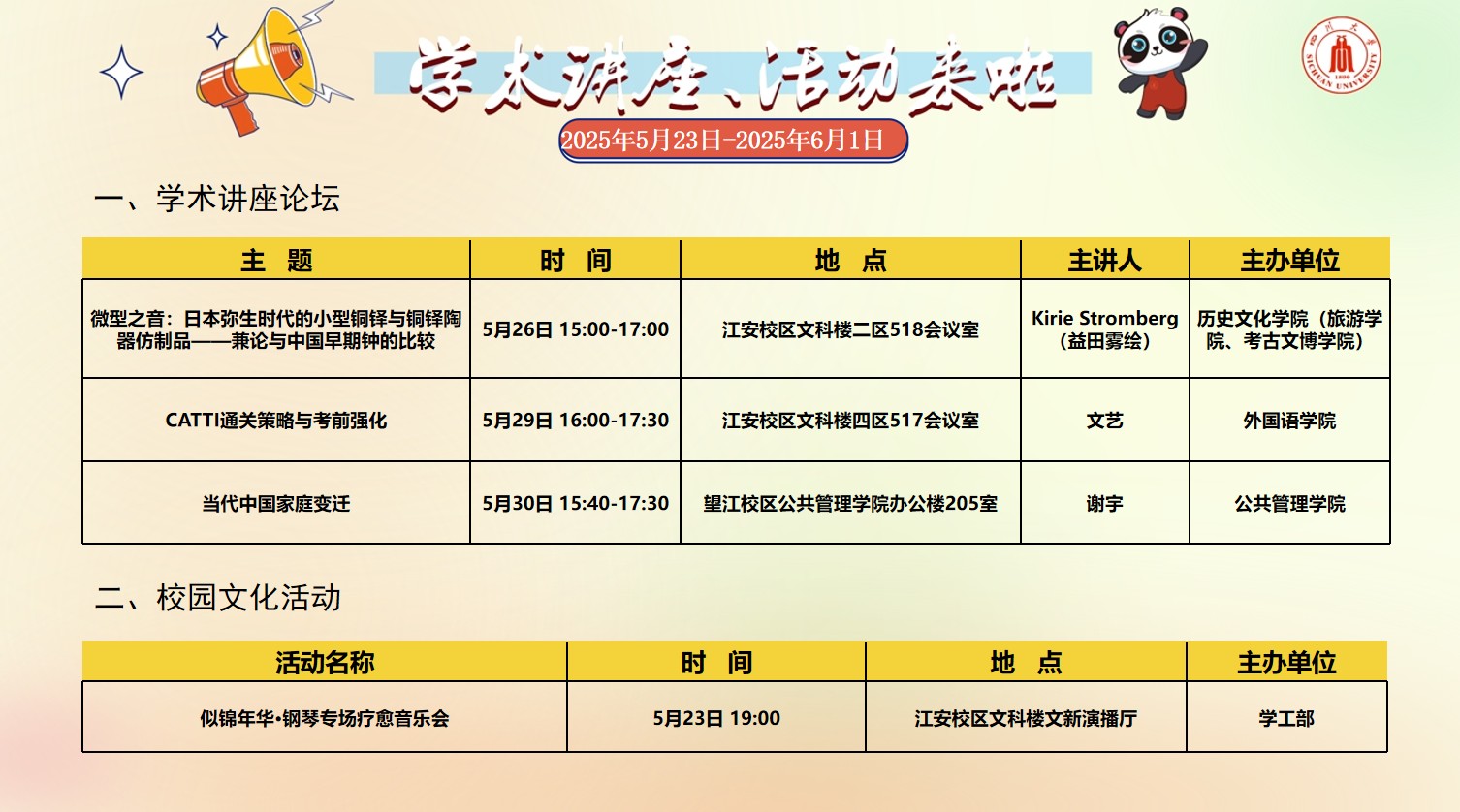 四川大学2025年5月23日-6月1日学术讲座论坛及校园文化活动预告