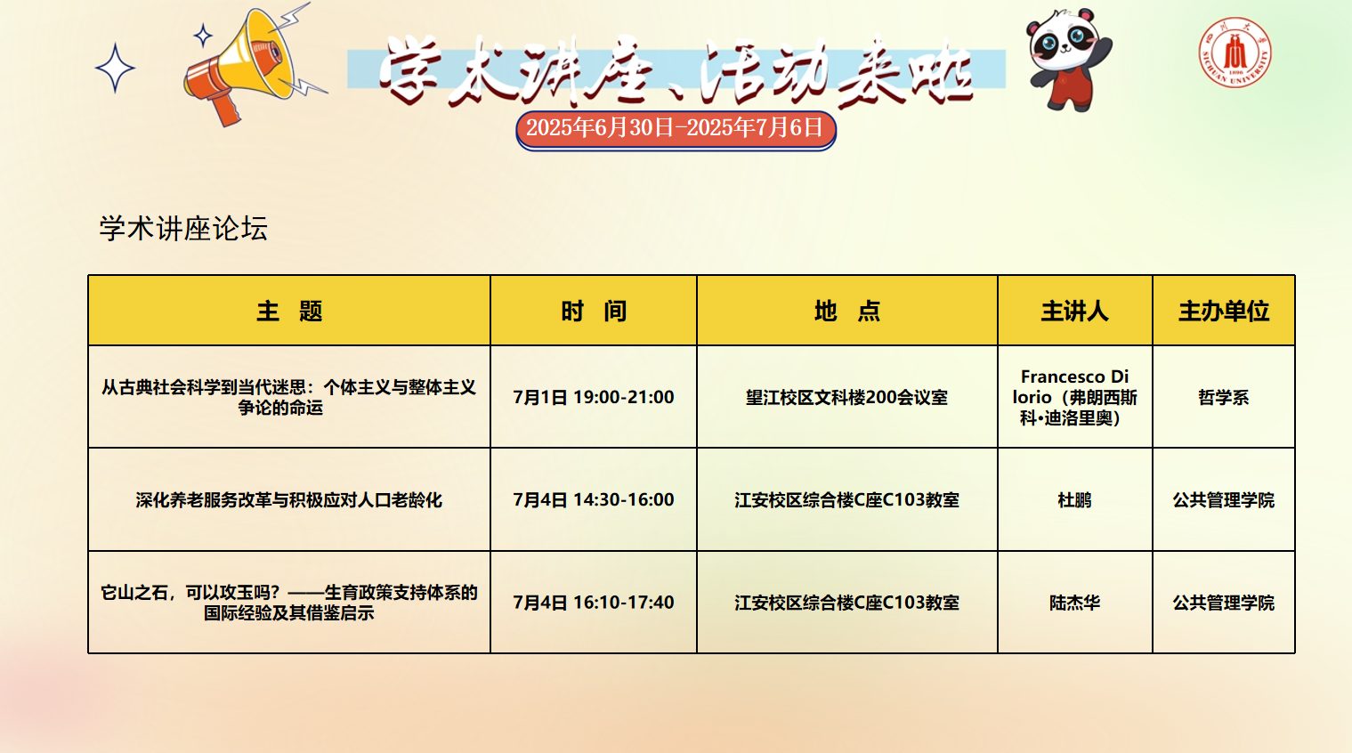 四川大学2025年6月30日-7月6日学术讲座论坛及校园文化活动预告