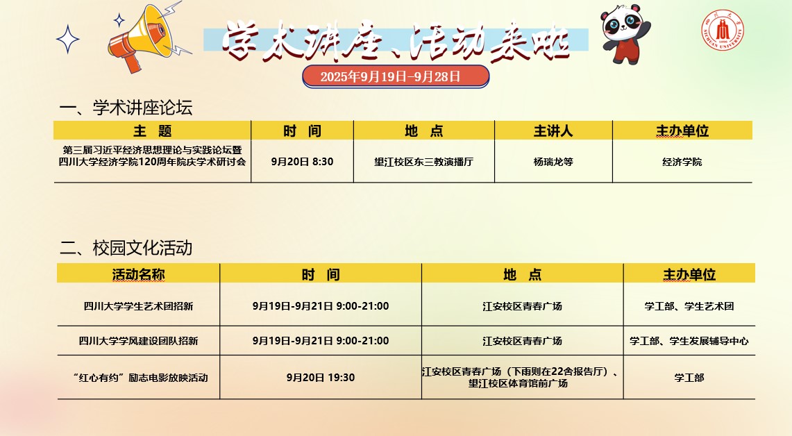 四川大学2025年9月19日-2025年9月28日校园文化活动预告