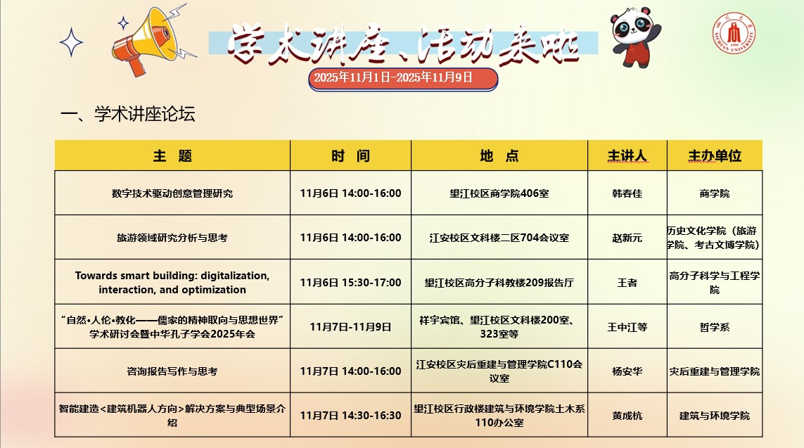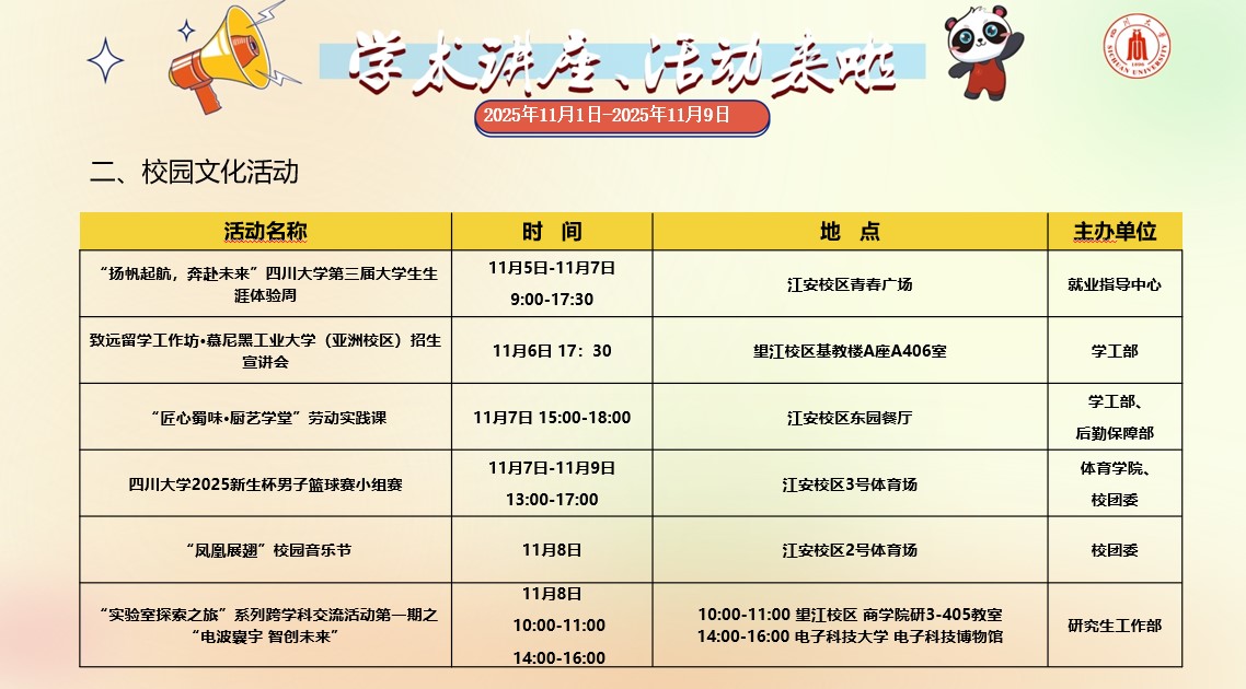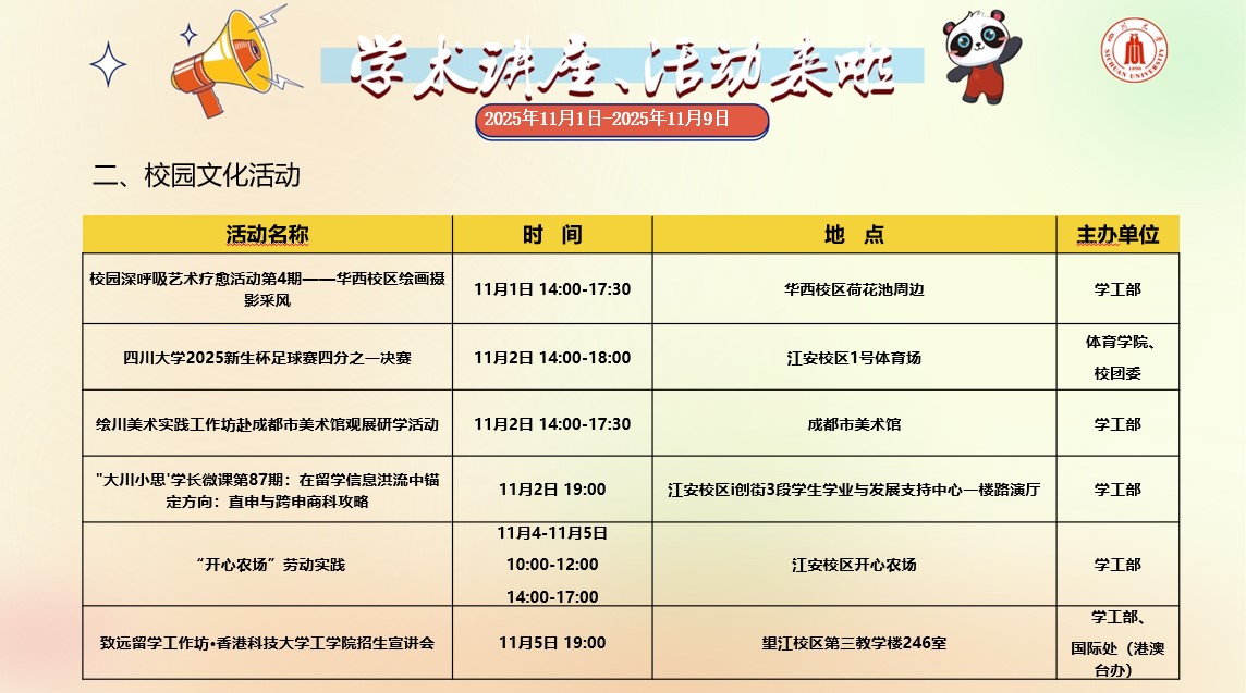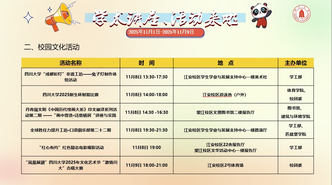 四川大学2025年11月1日-11月9日学术讲座和校园文化活动预告