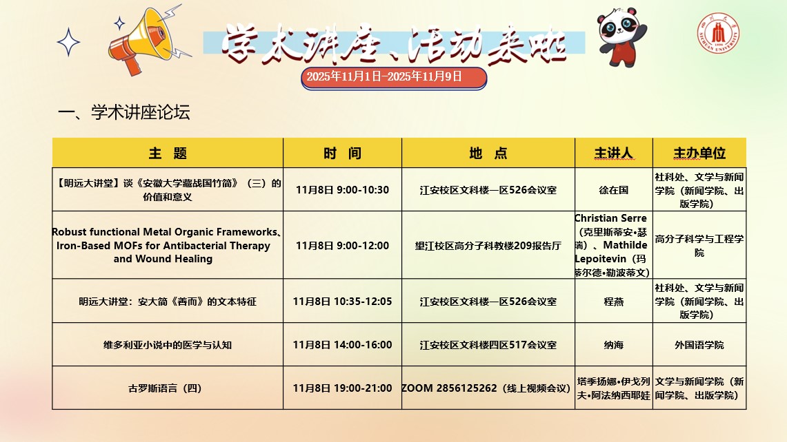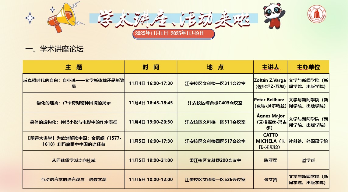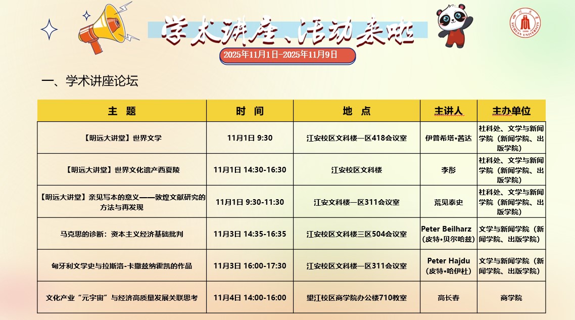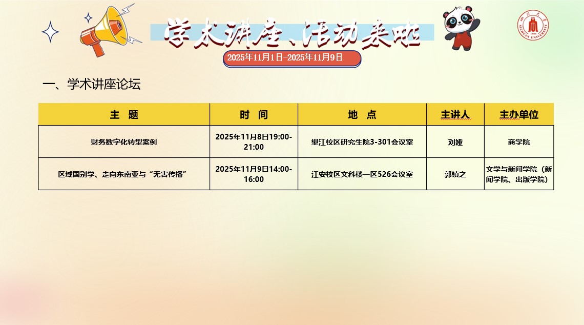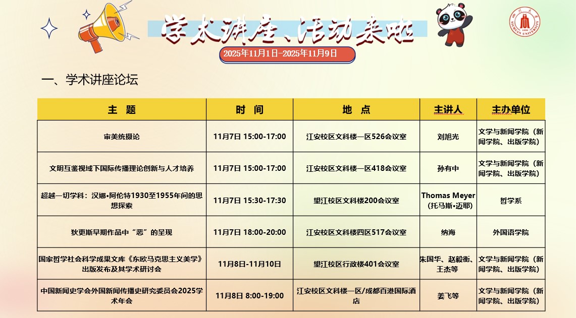 四川大学2025年11月1日-11月9日学术讲座和校园文化活动预告