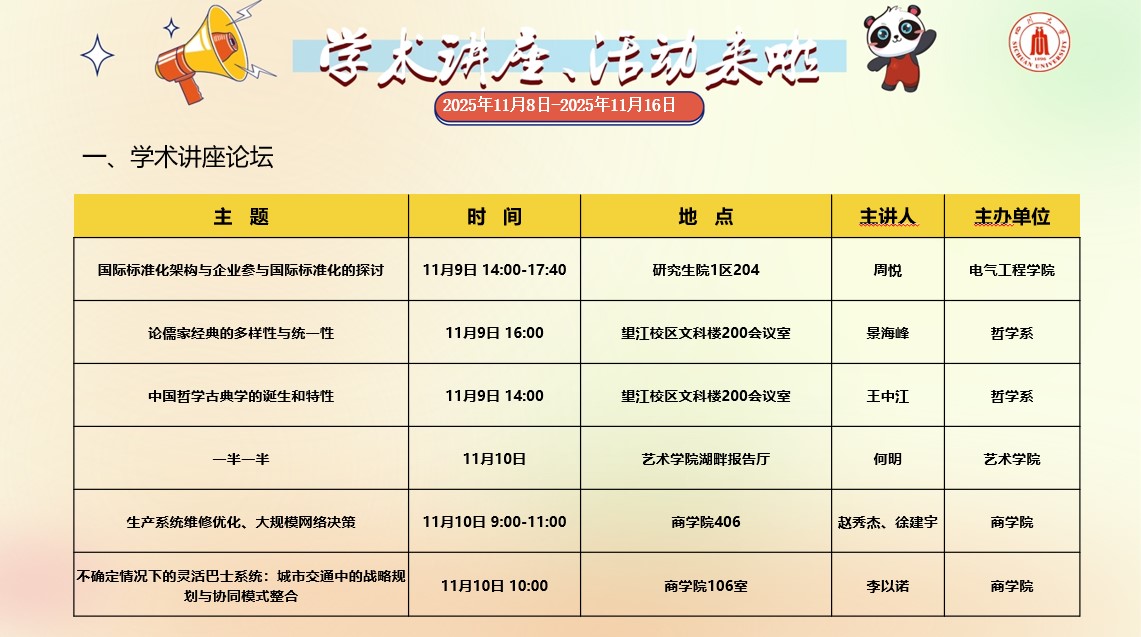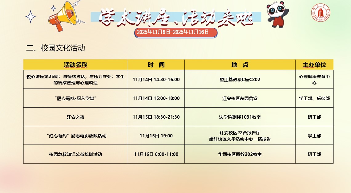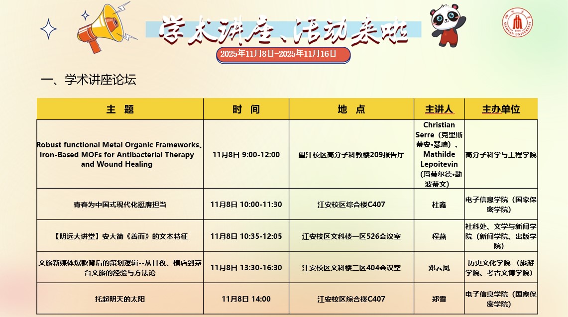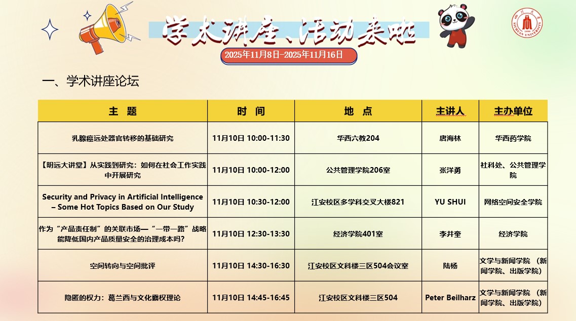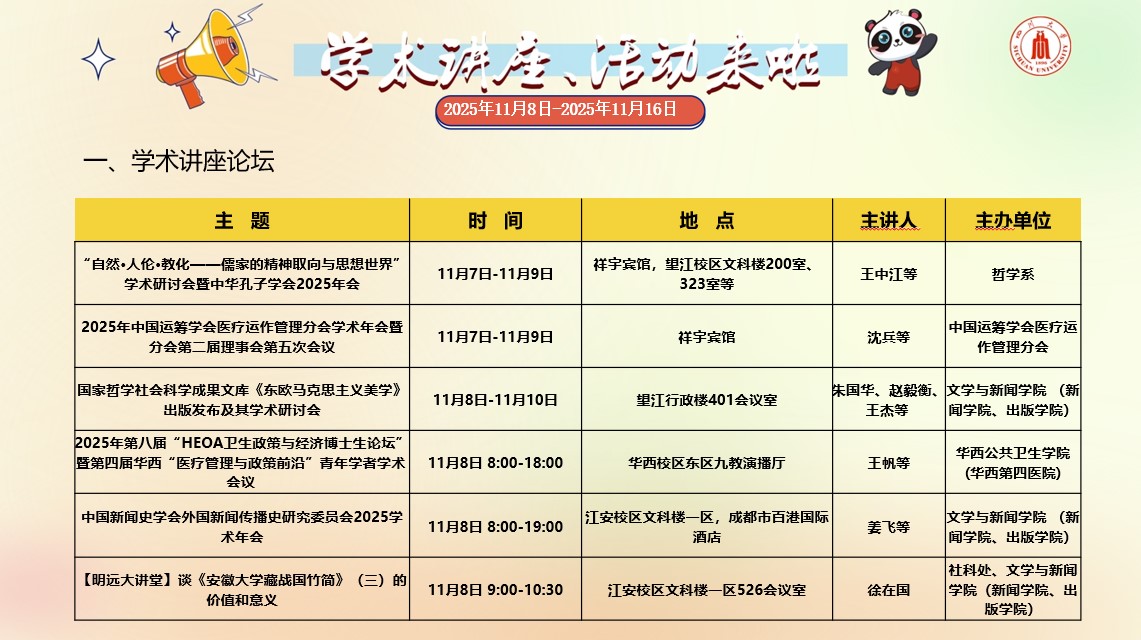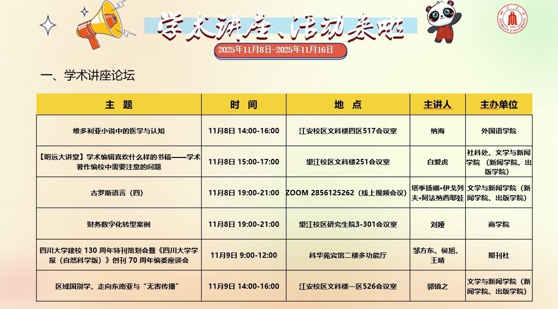 四川大学2025年11月8日-11月16日学术讲座和校园文化活动预告