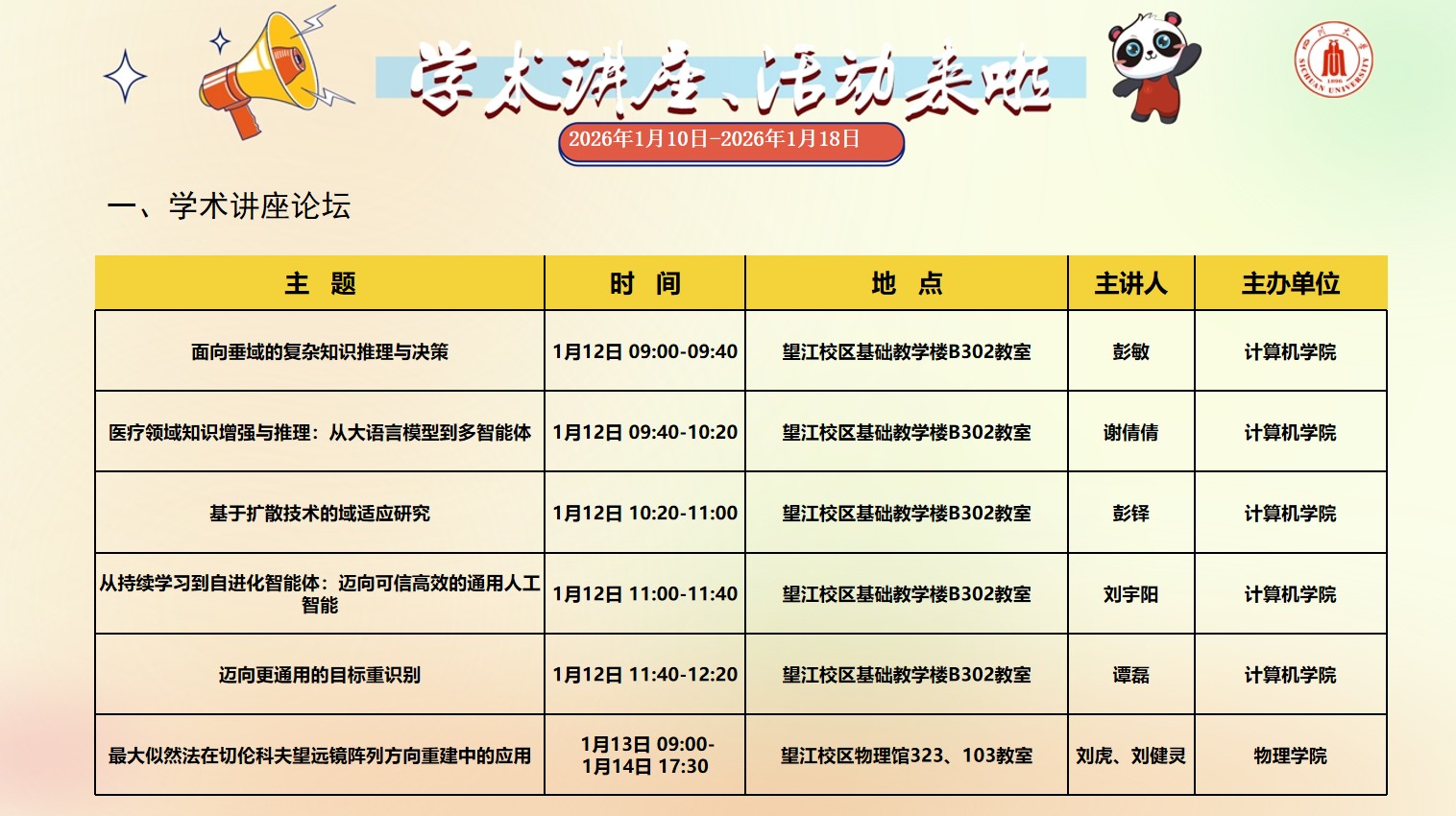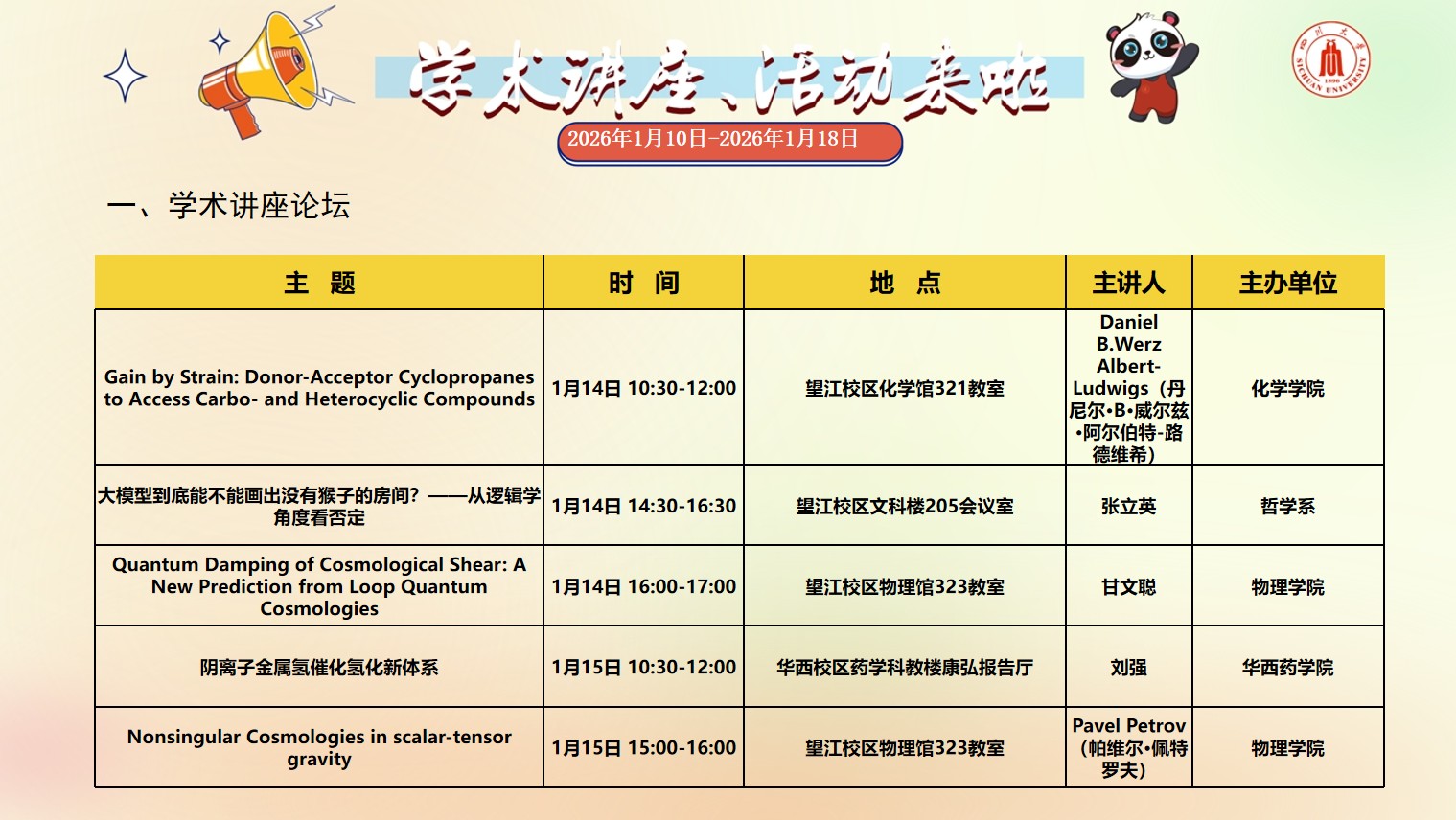 四川大学2026年1月10日-2026年1月18日学术讲座预告