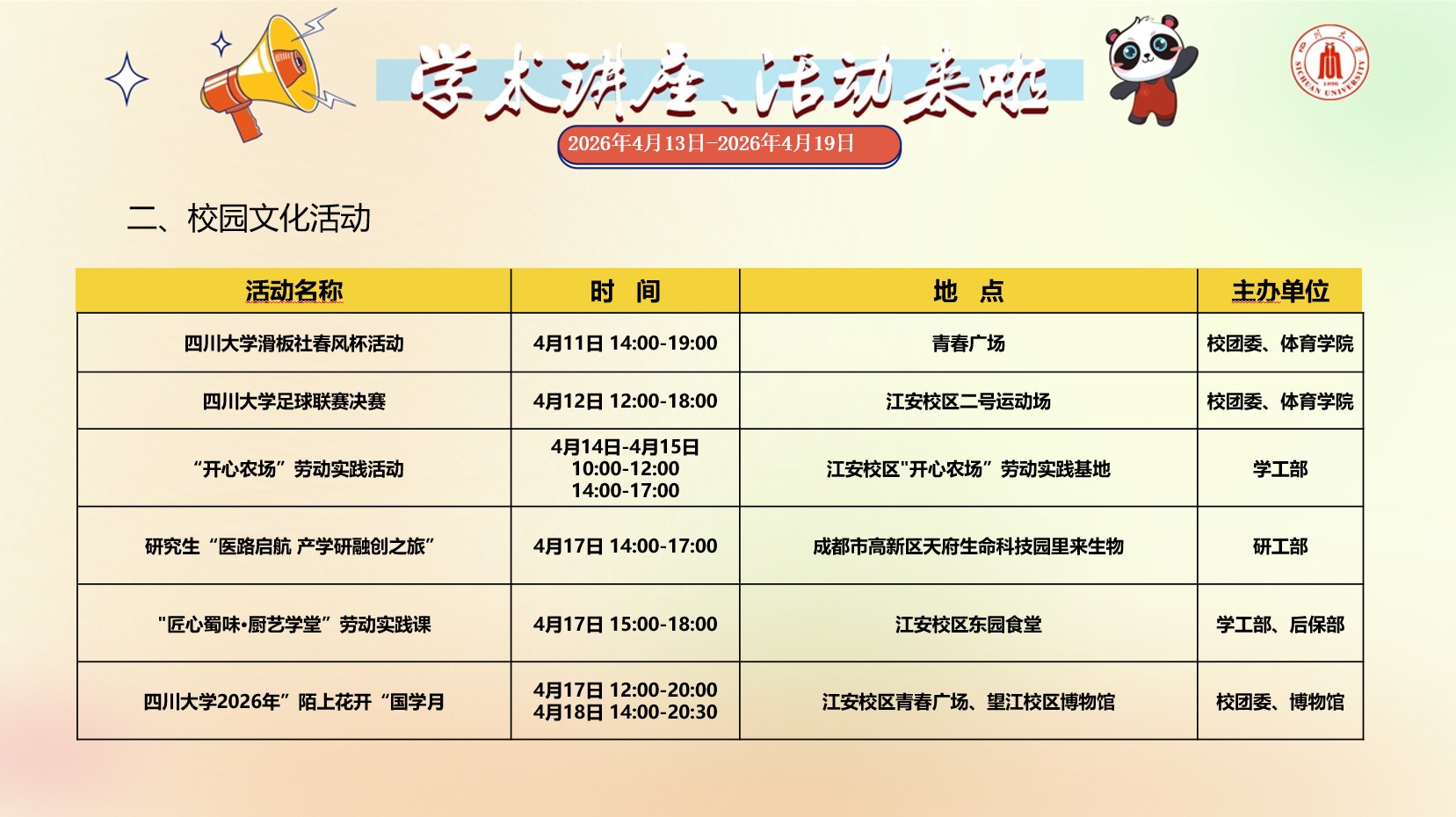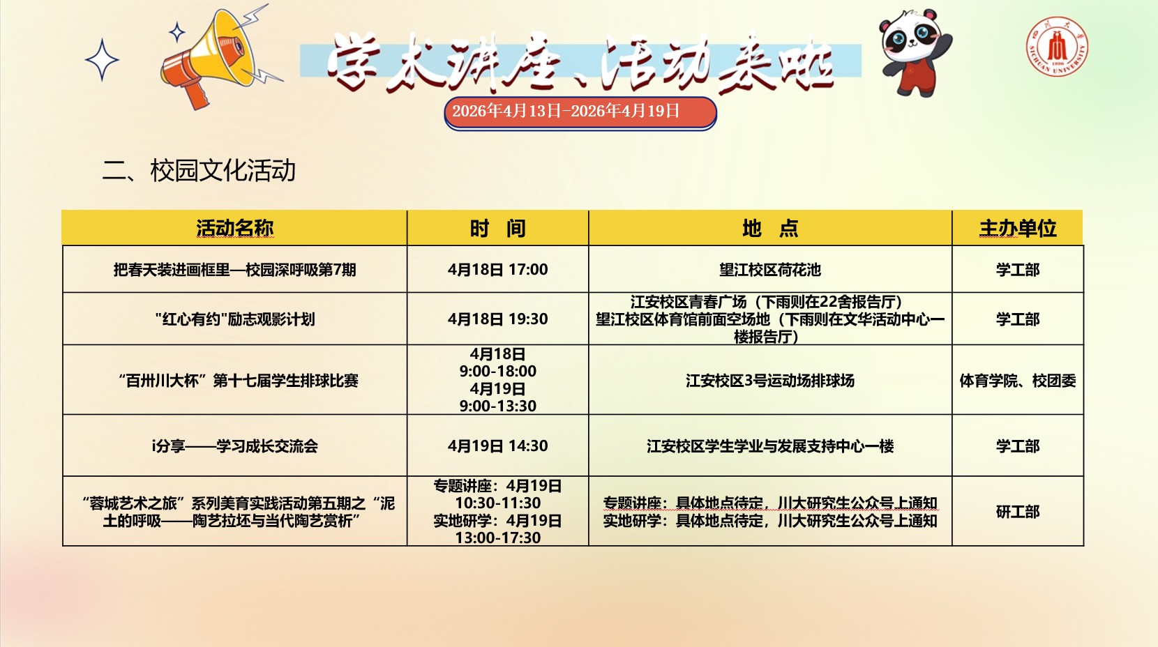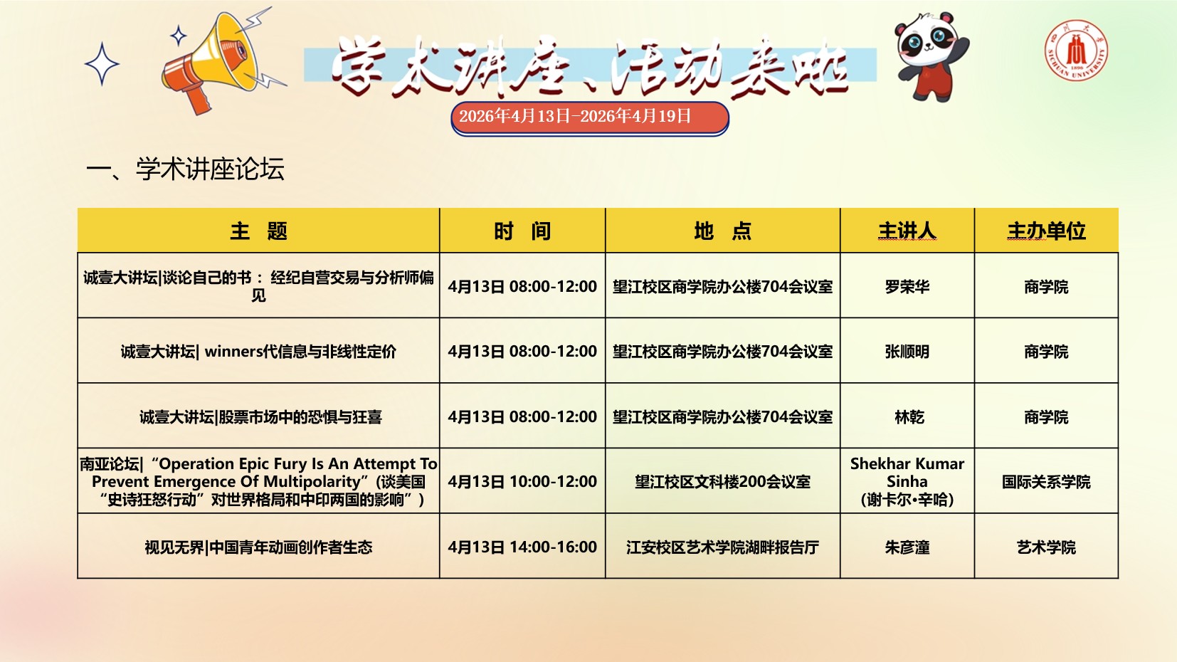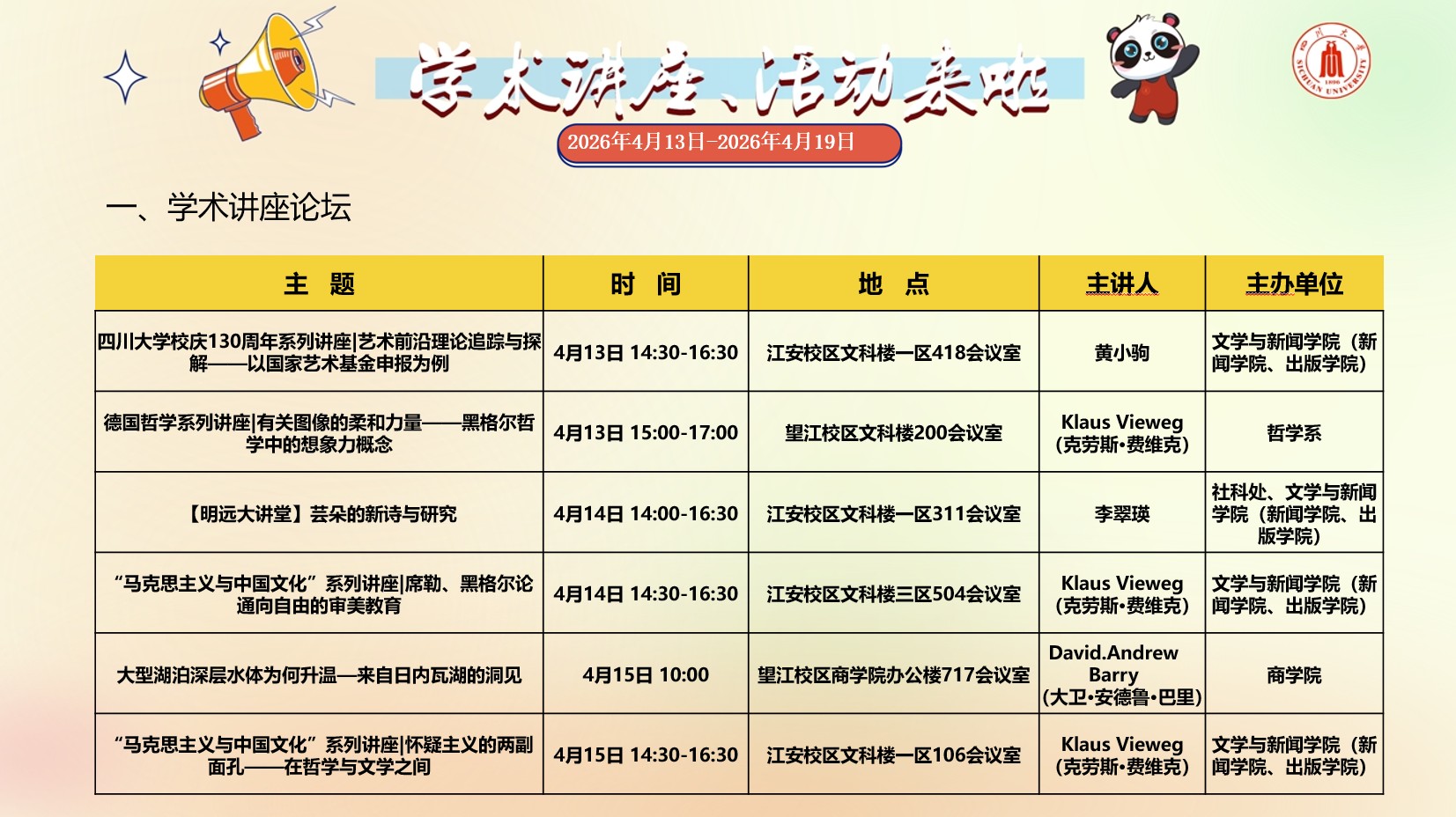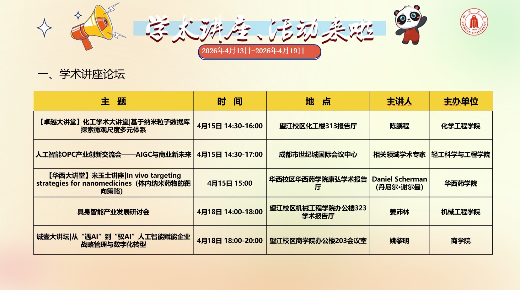 四川大学2026年4月13日-2026年4月19日学术讲座预告
