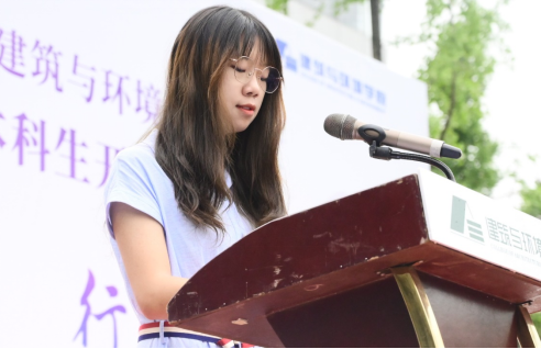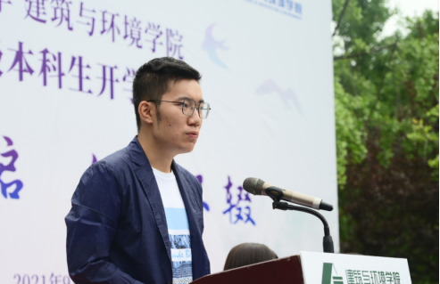 2018级工程力学专业赵灿同学作为在校生代表同新同学们分享了自己对大学生活的感悟。她结合自生成长经历,激励新生要勇于尝试、学会专著,也期望未来在祖国的建设事业上和各位学弟学妹一路奋勇前进。2021级土木工程专业曾禹钦同学代表新生发言。过去,他见证了土木人逢山开路、遇水架桥的不屈向前,历经了家乡基础设施建设和城乡面貌的蝶变升级……这些,都不断坚定着他的土木梦想。如今,建环成为了他梦想的新起点,他希望能在未来回到家乡,建设家乡,实现自己的人生理想。此外,他还号召各位新同学要学会宽容、学会尊重、学会自律。