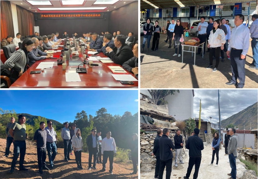 10月18日-10月20日,由四川大学熊峰教授、刘敏教授、赵炜教授等一行6人与清华大学杜新颖老师、中建西南院绿建中心陈元稔总建筑师组成的项目调研团队应四川省村镇建设处邀请,与省村镇建设发展中心一道赴甘孜州乡城县、得荣县开展调研与检查工作。省村镇中心李矛副主任、范胜巍所长、罗睿所长一同前往,甘孜州住建局罗卫副局长陪同。调研期间,项目组一行与乡城县县委书记杨林、县委常委常务副县长扎西彭措、县住建局及其他相关部门开展座谈交流,详细介绍了国家重点研发计划项目的工作重点和开展情况,并就项目组与乡城县在传统村落集中连片保护利用工作中的合作事项进行商讨。村镇中心和项目团队实地考察了乡城县色尔宫村、康南特色农产品加工集中发展园区、青德镇白龚村文创中心、青德镇仲德村、万亩果园等地,并与当地管理人员开展了深入座谈。随后,村镇中心与项目团队一行赴得荣县开展调研工作,与得荣县委常委格桑进行了会谈,并在县住建局领导陪同下实地考察了瓦卡镇、子庚村等传统村落片区,就下一步深入开展合作进行了商讨。