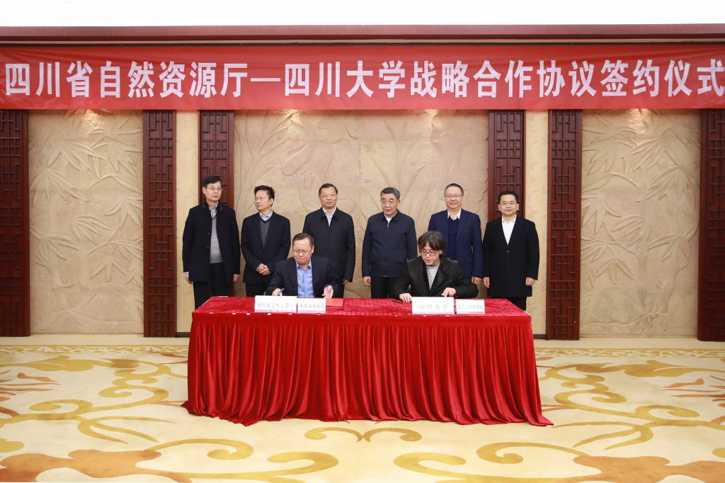12月8日,四川省自然资源厅-四川大学战略合作签约仪式在学校望江校区明德楼举行。四川省自然资源厅党组书记、厅长、省自然资源总督察孙建军,党组副书记、副厅长田文,党组成员、总规划师陈涛;校党委书记王建国,副校长梁斌、褚良银,及双方相关单位负责人参加签约仪式。
