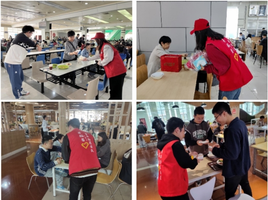 利用午餐和晚餐时间在江安、望江两校区内开展“举‘收’之劳,乐享‘食’光”食堂文明就餐推广志愿活动,建环研分会携手22级硕士2班、5班团支部的80余名志愿者参与活动。