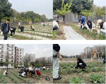 活动开始前,研究生土木工程党支部书记周磊老师做了发言,他强调劳动教育在帮助同学们树立正确的劳动观和价值观中的重要性,希望同学们在实践中忆苦思甜,传承吃苦耐劳、勇于担当、甘于奉献的伟大精神。活动伊始,同学们戴好手套,拿好农具,按照农场负责人指示,热情洋溢地投入到劳作活动中。春光正好,在规划整齐的大葱和莲花白种植区内,同学们相互协作,锄地拔草、捡石垅土、平整菜地、为向日葵地膜扣膜留口,忙得不亦乐乎。日头渐升,时至午时,同学们陆续归还手套和农作用具,结束上午的工作,回头再看,来时杂草丛生、石子遍地的大葱和莲花白种植区已是一片勃勃生机。