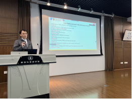 交流中,赵晓林教授作了主题为“Hybrid construction utilizing seawater sea sand concrete and FRP”的学术讲座。他分享了在海水海砂混凝土(SWSSC)与纤维增强复合材料(FRP)的最新研究成果,从不同组合模式下材料本构模型、长期力学性能与耐久性机理等方面深入剖析了高性能FRP-SWSSC材料与组合结构的关键问题。报告结束后,在场师生与赵晓林教授对FRP复合材料的工程应用前景等方向进行了互动交流。