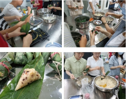 活动开始,王鑫同学向大家讲解了端午节的由来以及粽子的历史,指导同学详细演示了三角粽、六角粽和枕头粽的制作流程,随后,同学们拿起粽叶,开始了粽子的制作。