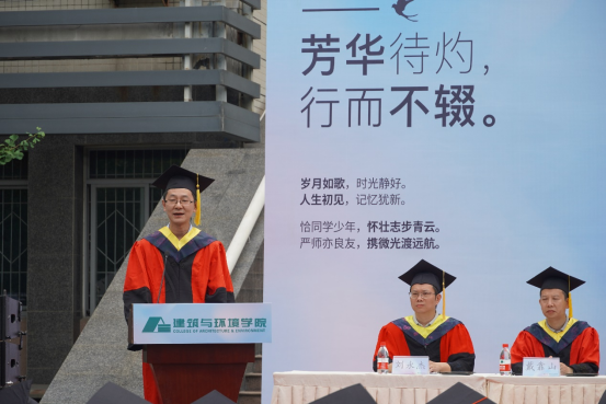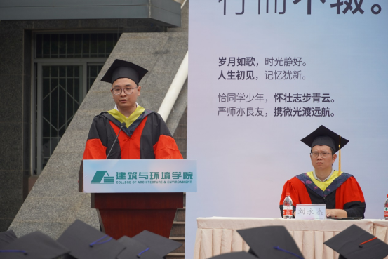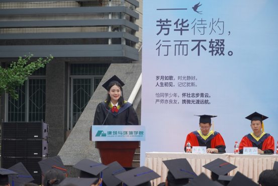 本科毕业生代表土木工程专业任玮楠同学表示身处时代洪流,作为仍能听从内心的召唤,永远是肩上飞扬有风、心似滚烫火焰的有梦青年,将心怀有梦,努力在自己的岗位上展现出川大人、建环人独有的风采。并祝愿学校、足球现场直播比分