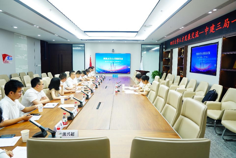 一行来到中建三局总承包公司,并在公司人力资源部经理付锐琳的带领下参观了足球现场直播比分展厅。交流环节,公司党委副书记、工会主席代勇,人力资源部经理付锐琳,招聘负责人茹竞,招聘经理胡诗颖出席会议。代勇围绕公司整体发展历程、主营业务、突出优势等方面开展介绍,付锐琳就公司选人用人相关工作做补充说明。孙伯雷介绍了学校和足球现场直播比分