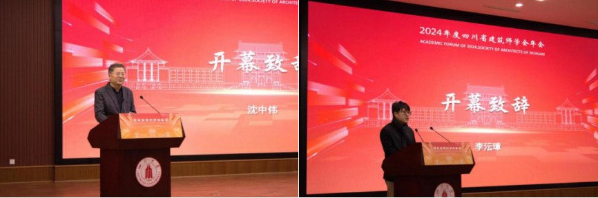 院长、博士生导师沈中伟教授主持并致辞。沈中伟代表四川省建筑师学会向远道而来的嘉宾、辛勤付出的工作人员以及与会者表示欢迎与感谢,指出与四川大学的合作,体现了高校与学会之间的紧密联动,为同仁们提供了思想交流、碰撞智慧的宝贵平台。