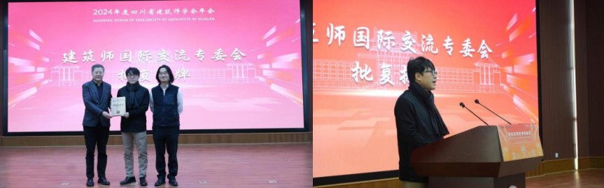 会上,四川省建筑师学会秘书长、中建西南院副总建筑师陈荣锋宣读了成立四川省建筑师学会建筑师国际交流委员会批复,并为建筑师国际交流专委会举行授牌仪式。李沄璋作为建筑师国际交流委员会主任委员发表致辞。
