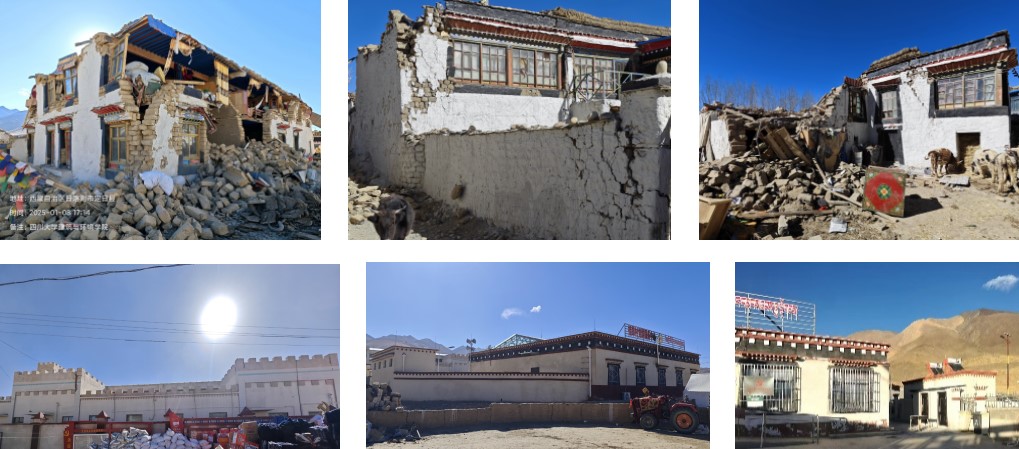 土木工程系熊峰教授课题组青年女教师冉明明副教授积极响应号召与硕士研究生叶晨希乘坐当日最早一班飞机前往拉萨,应邀前往灾区提供模块箱房技术支持,开展房屋震害调研。冉明明一行克服高寒缺氧困难,经8小时车程抵达震区,立即展开箱房技术指导工作;随后,对定日县的措昂村、茶江村、森嘎村、古荣村的房屋震害摸排和建筑结构调研工作。