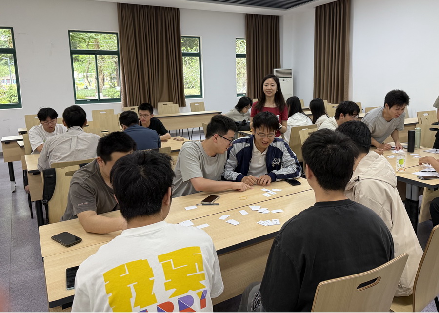 通过书写与分享,同学们围绕自身核心优势展开讨论,分析这些优势在科研、生活及团队协作中的具体体现。通过联想力学中的“平衡”概念,提出“优势如同结构中的关键节点,既支撑个人成长,又需与他人的特质互补”。通过反馈,每位同学重新校准了对自身特质的认知,在互动中实现了“自我视角”与“团队视角”的融合。