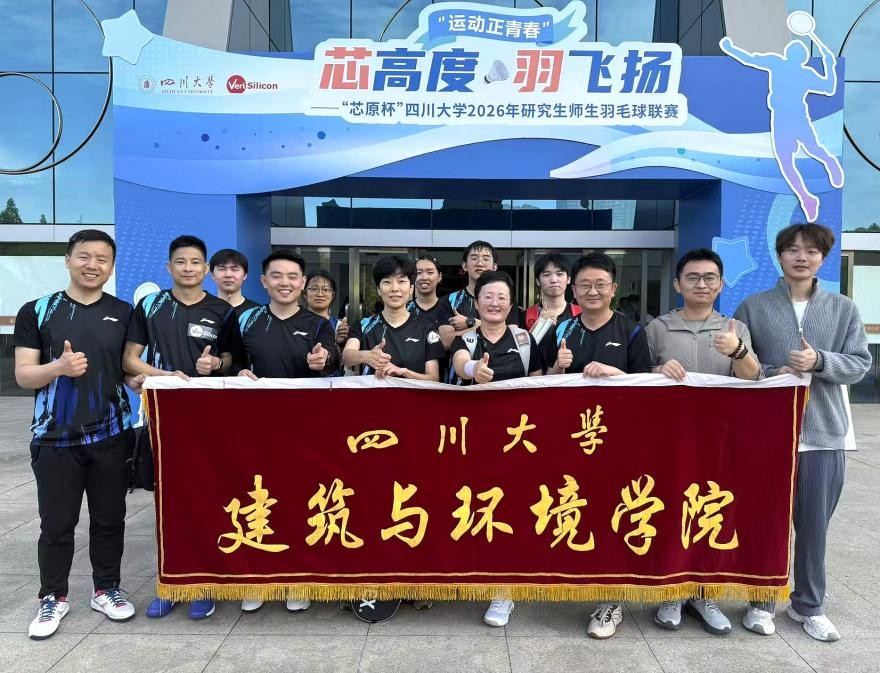 4月11日至12日,四川大学“运动正青春”——“芯原杯”2026年研究生师生羽毛球联赛在望江校区体育馆举行。由杨胜担任领队,欧阳金龙担任教练,董娜、王倩娜、盛超、梁林、钟声5位教师及王秋芷、杨庆煜、郭丰毓、陈思、李宜洋5位学生组建师生联队参赛,最终获得16强成绩。