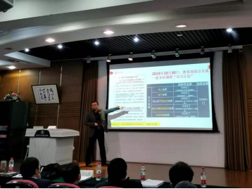 教务处副处长严斌宇以“四川大学一流本科课程建设与实践”为题,以四川大学一流课程建设的情况出发,介绍了前一年度川大一流课程的建设情况,以及本年度一流课程申报的基本要求和申报方法。严斌宇副处长指出,具有四川大学特色的一流课程,可充分利用课堂教学改革为突破口,以“教室革命”作为抓手,采用“小班化、面对面、点对点”的方式进行教学改革。他接着介绍了五类一流课程的申报要点和基本要求,并以自身申报经验举例,详细介绍了一流课程申报各项准备材料的难点和重点领域。