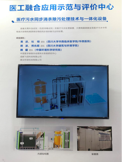 /华西医院副院长黄进团队联合开发的医工融合应用示范项目“医疗污水同步消杀除污处理技术与一体化设备”受邀参展。该项目以中国环境科学研究院新冠疫情防控应急项目(2020-JY-003)作为研发支撑,旨在通过生化处理技术与高级氧化技术相结合,无需外加试剂(包括消毒试剂),通过电催化臭氧强化处理,只需电能即可实现医疗污水中有机污染物和病原微生物的同步消杀除污处理。一体化设备还可根据不同医院的实际处理需求进行模块化定制。