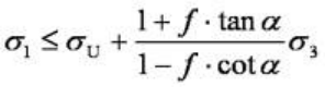 其中f是裂纹表面摩擦系数,α是裂纹倾角,σU是含裂纹材料的单轴抗压强度,σ1和σ3是主应力。经简化该准则可转化为最大剪应力准则,在无裂隙时该准则转化为著名的库伦摩尔准则;