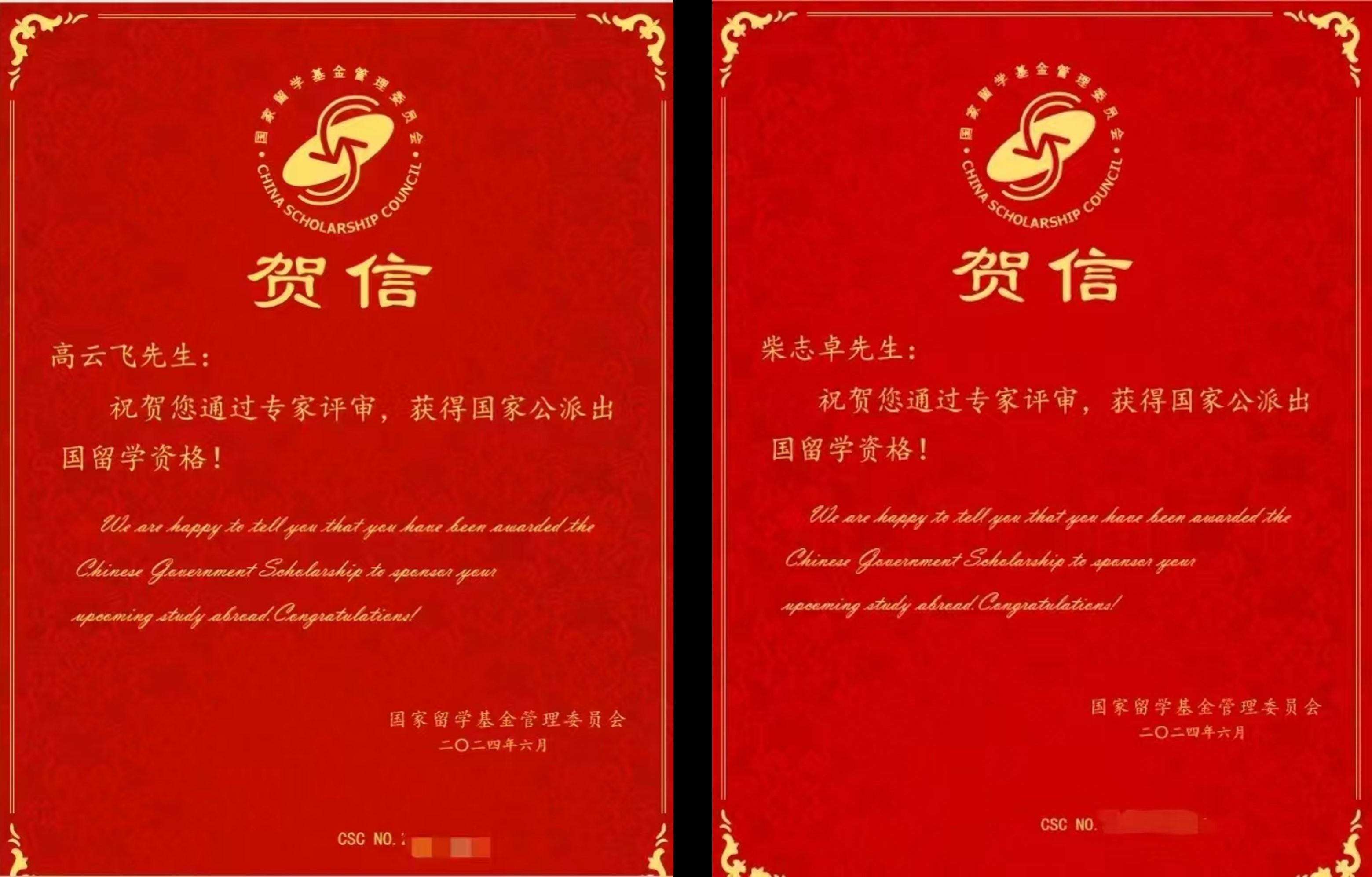 2020级工程力学专业(力学-软件工程跨学科交叉专业实验班)本科生高云飞、环境工程本科生柴志卓获国家公派出国留学资格。