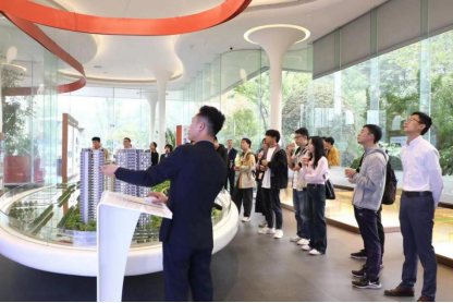 一行前往中能建旗下项目——紫郡公馆参观。首先,由中能建主宣讲官罗星强向同学们介绍了中能建作为世界前五百强企业,在国内外所取得的成就、项目概况及代表性工程,并强调,中能建一直致力于探索绿色、匠心而稳健的发展路线。紧接着,罗星强利用售楼处炫目的max大屏展开对紫郡公馆项目的介绍,并带领大家一起走进十五楼的样板间,实地感受紫郡公馆的精致以及中能建的实力。
