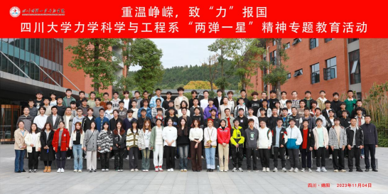 “热爱祖国、无私奉献,自力更生、艰苦奋斗,大力协同、勇于攀登。”是“两弹一星”精神的内涵,激励和鼓舞了几代人,是中华民族的宝贵精神财富。为继承和发扬“两弹一星”精神,引导学生深刻理解“两弹一星”精神科学内涵�11�4�-5日,力学科学与工程系副系主任王蒙,青年教�李浪、唐鹏飞和学院辅导员周琦颖带�2022�2023级力学系本科生赴四川“两弹一星”干部学院开展了为期两天的“两弹一星〞精神专题教育活动�