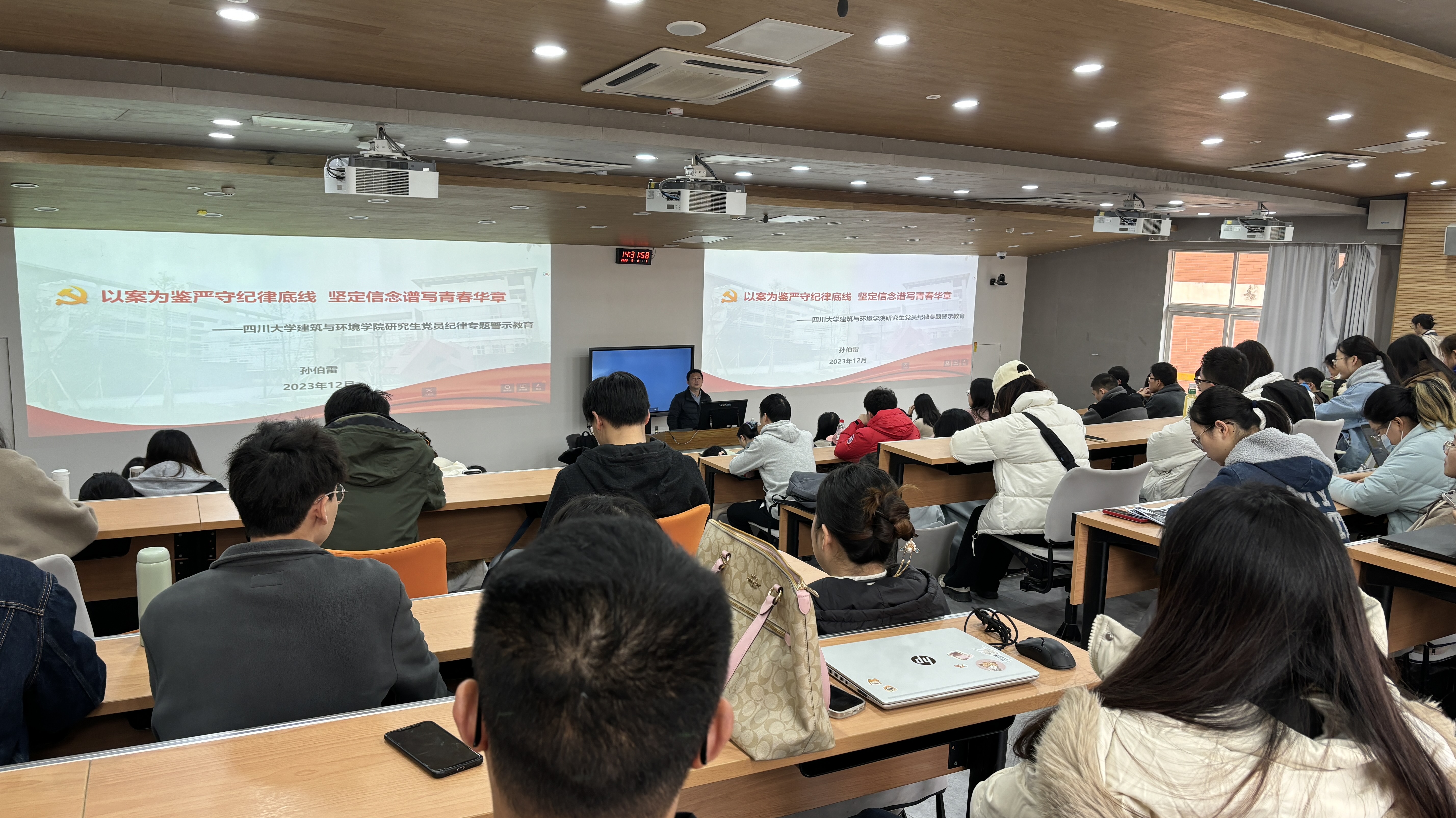 为进一步强化和推进足球现场直播比分 研究生党员队伍建设,切实提高研究生党员的先进性和纯洁性,时刻筑牢信仰之基、绷紧纪律之弦,12月8日下午,足球现场直播比分 在望江校区基础教学楼C101教室举办了研究生党员纪律专题警示教育学习会。学习会由足球现场直播比分 党委副书记兼纪委书记孙伯雷主讲,足球现场直播比分 研究生辅导员、研究生党支部书记和望江校区研究生党员共计120余人参加了此次警示教育学习会。