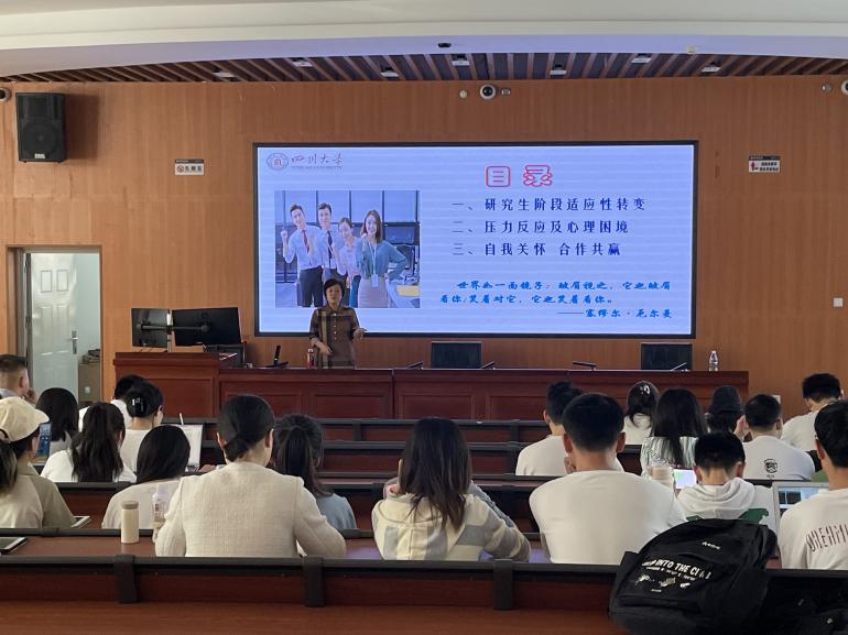 全体2023级研究生做题为“自我关怀 合作共赢——研究生心理困境预防与应对”的分享。活动由足球现场直播比分