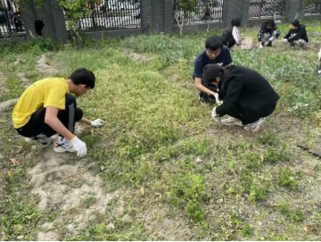 同学们戴上手套,拿起除草铲,三三两两成一组,投入热火朝天地除草劳动之中。辨杂草、紧握根、轻敲土、用劲拔,同学们互相配合、互相合作。经过1个多小时的辛勤劳动,农场里的杂草被清理干净,同学们细致地为含苞待放的春花果蔬浇水,看着此刻整洁有序、焕然一新的农场,同学们脸上都露出了喜悦的笑容。