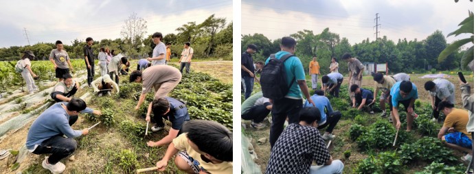 研究生土木第一、二党支部联合开展“弘扬劳动精神 书写奋斗青春”主题党日活动。活动在江安校区开心农场劳动教育实践基地开展。