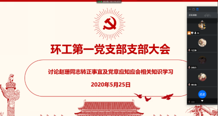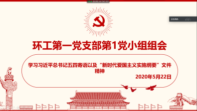 研究生环工一支部通过线上方式开展主题为“五四精神,传承有我”的小组会以及支部生活会进行爱国主义教育系列活动。