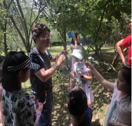 绿心组为“参观江安植物园及标本制作”组,由建筑系廖晨阳老师负责,土木系付垚老师协助,带领小朋友认识学校明远湖边的各种植物,并现场教授如何采集植物标本,再回到学院三楼会议室,在工作人员准备好的画框上制作精美的植物标本�