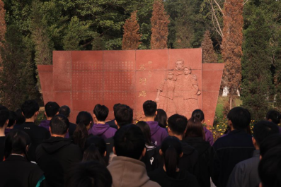 组织本科生在江安校区英烈碑前开展清明祭英烈主题活动。辅导员何腾老师现场组织,20名低年级共青团员和4名高年级中共预备党员参与。