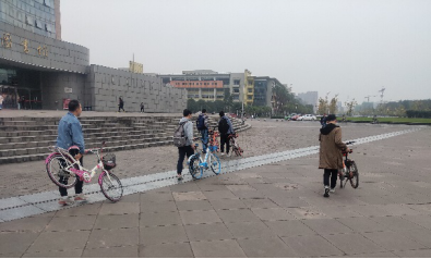 2016级本科二支部何帅、杨胜杰等8名支部成员在图书馆门前的知识广场开展了整治自行车乱停乱放的志愿活动。
