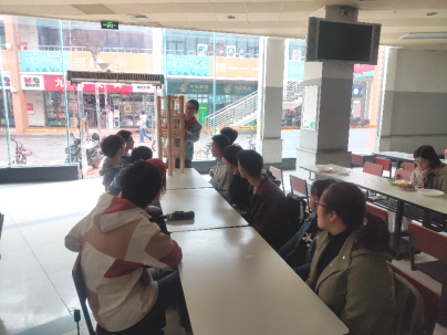 2016级本科二支部成员房仕宜、杜海等6名党员在西园一餐厅食堂与低年级土木专业同学进行了结构设计大赛经验分享。