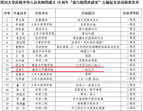 老师钱玉琼以《行走在你的大地上》、范海冬以《一张名片》分别获二等奖。