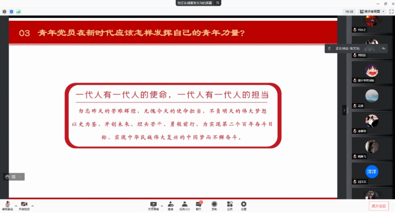 百川学生宣讲团,通过腾讯会议的方式开展党的十九届六中全会精神专题学习。