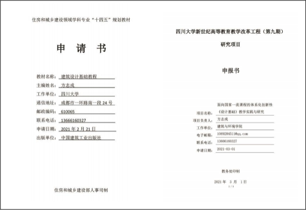 一、动员和组织教研室教师积极申报“高等教育职业教育住房和城乡建设领域学 科专业“十四五”规划教材”和“四川大学新世纪高等教育教学改革工程(第九期) 研究项目”