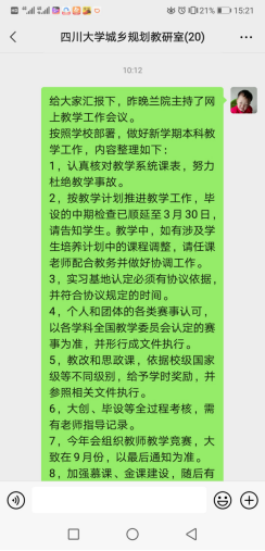 三�2021�4�01日,进一步推动和集中学习思政课程建设、严格和加强课堂教学纪律工作、毕业设计推动和和细节检查工作、加强老师的工作沟通和问题协调工作,见下图�