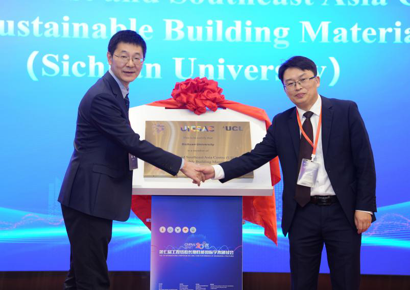 (UCL)白云教授担任中心主任,四川大学为中心创始成员单位之一,联合全球可持续建筑材料领域的优势力量,为东亚及东南亚国家的混凝土工程从业技术人员提供培训及资质认证服务。白云、戴峰共同为中心揭牌。